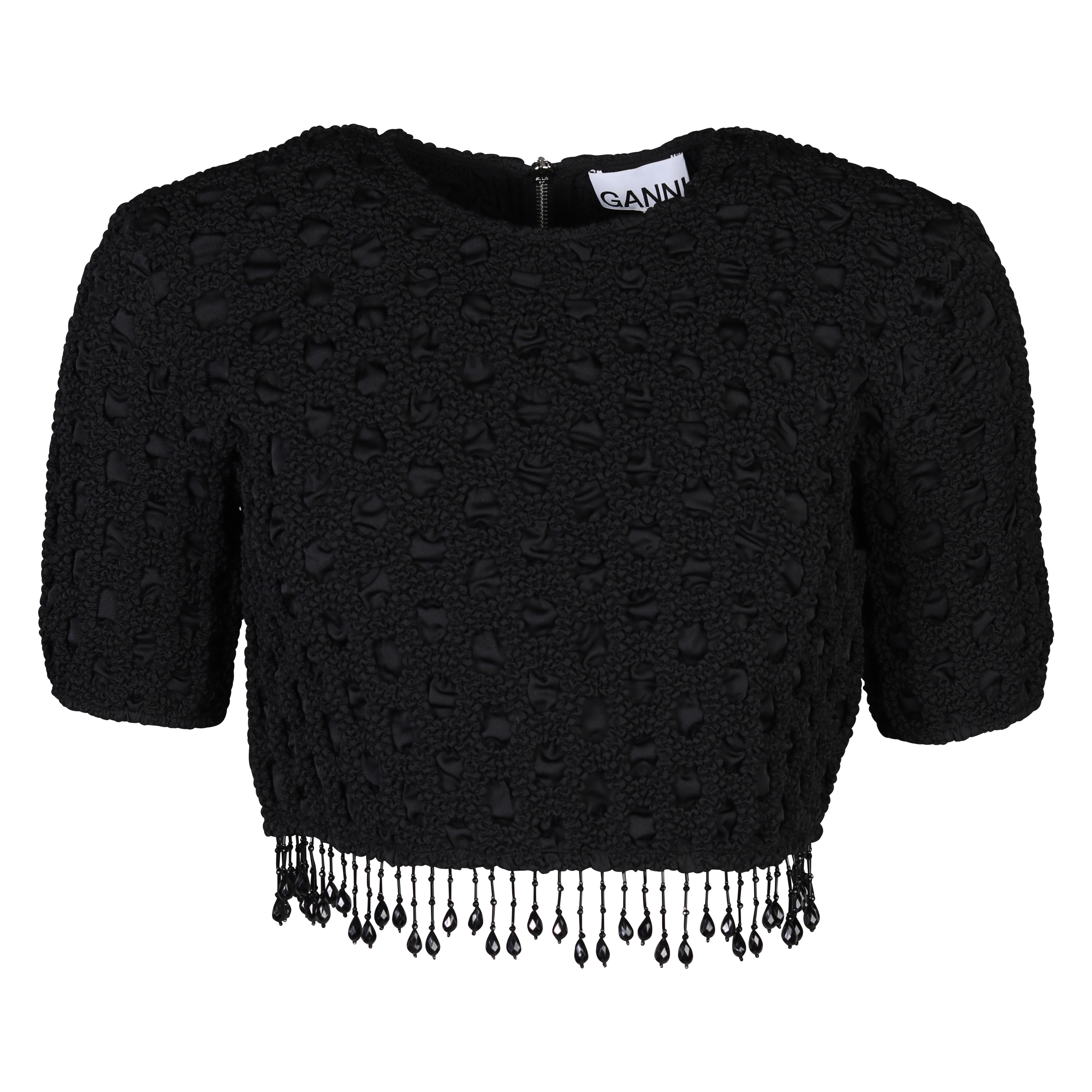 - Ganni Bead Fringes O-Neck Smock Top