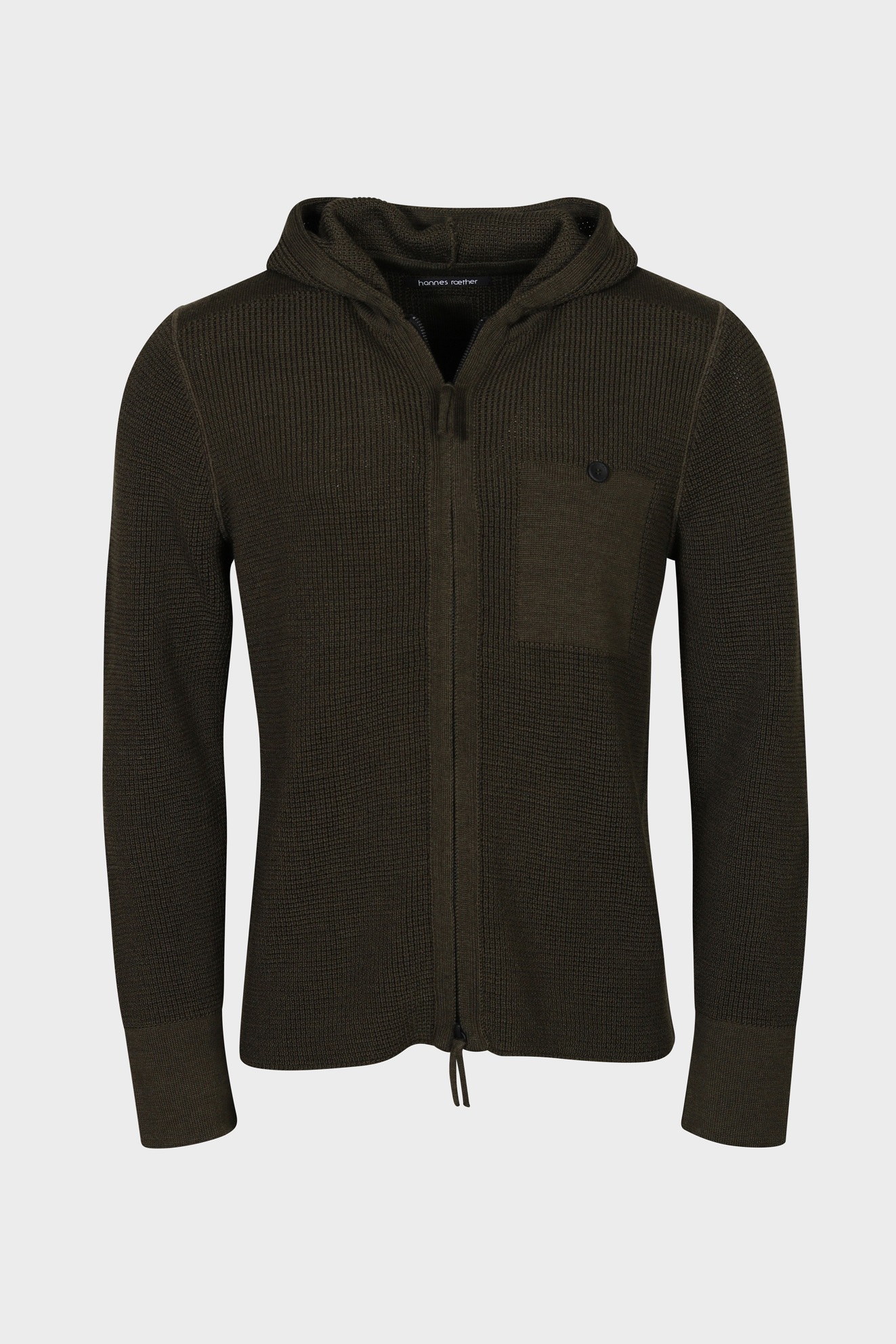 HANNES ROETHER Hodded Knit Jacket in Dark Olive 2XL