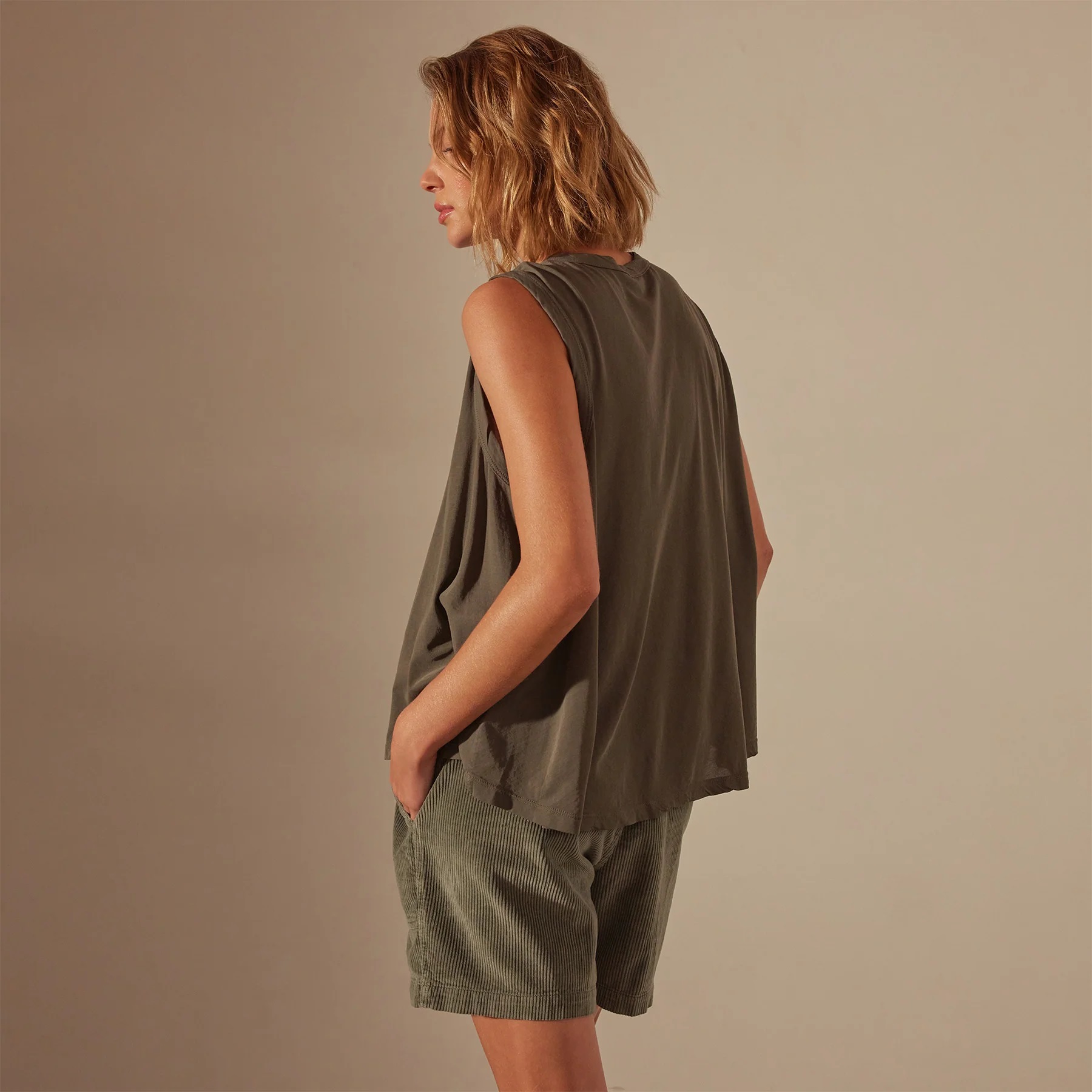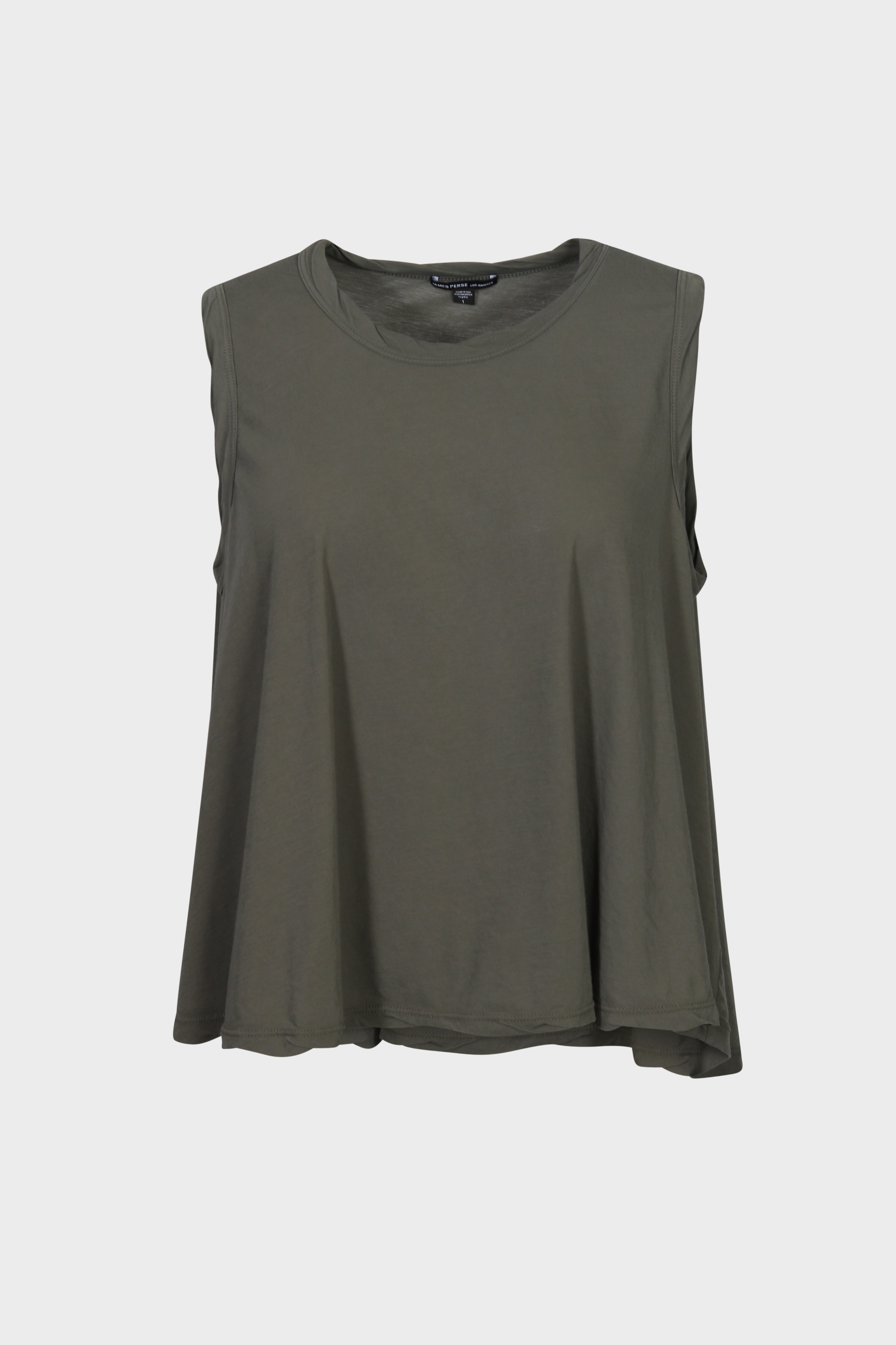 This Tank is made in luxurious, soft and drapey Japanese cotton jersey. Style details include high low hem,self binding hems at neck and armhole, and crew neckline. Garment dyed. Relaxed fit