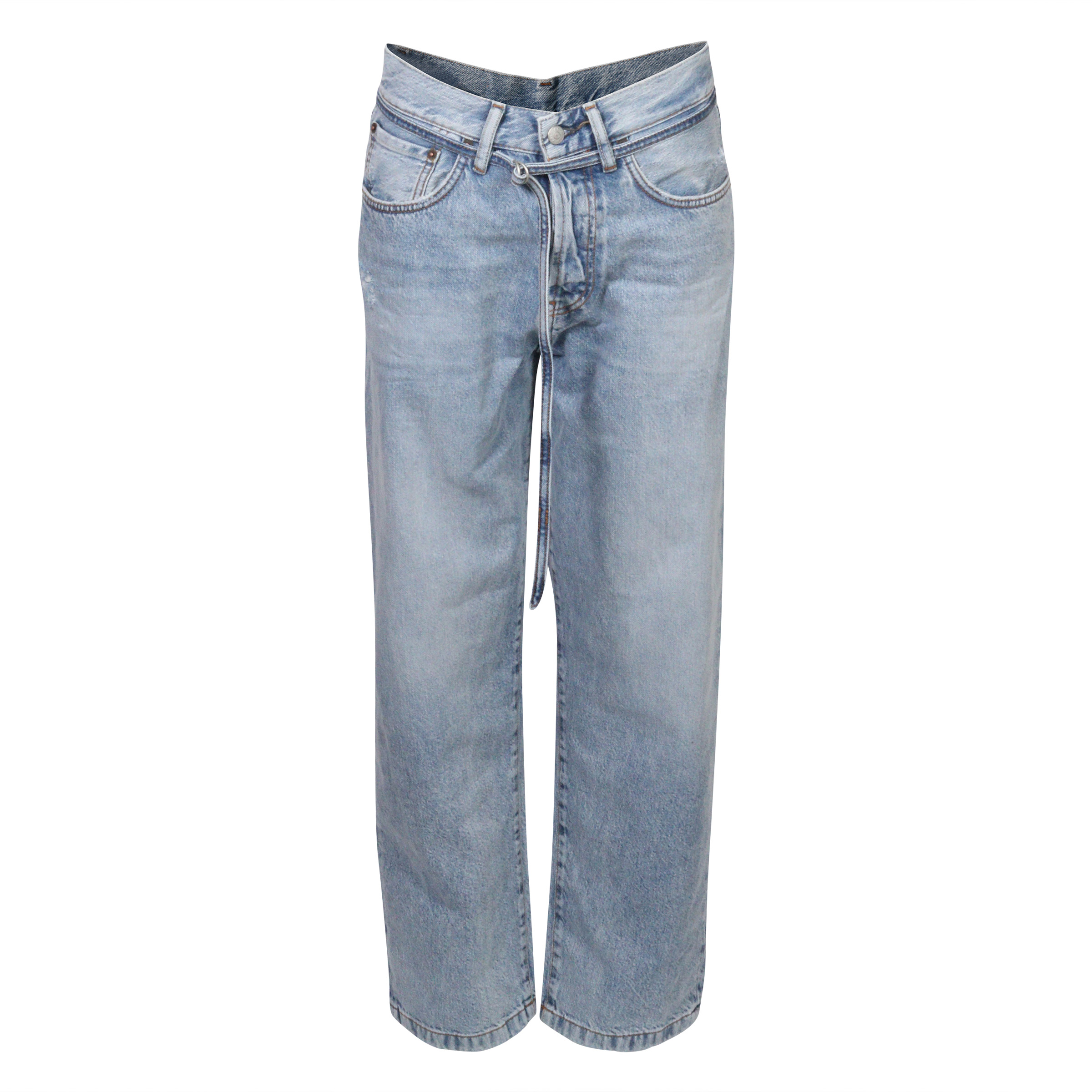 Hellblau gewaschene Acne Studios Jeans 1991 Toj mit geradem Bein und Denimgürtel