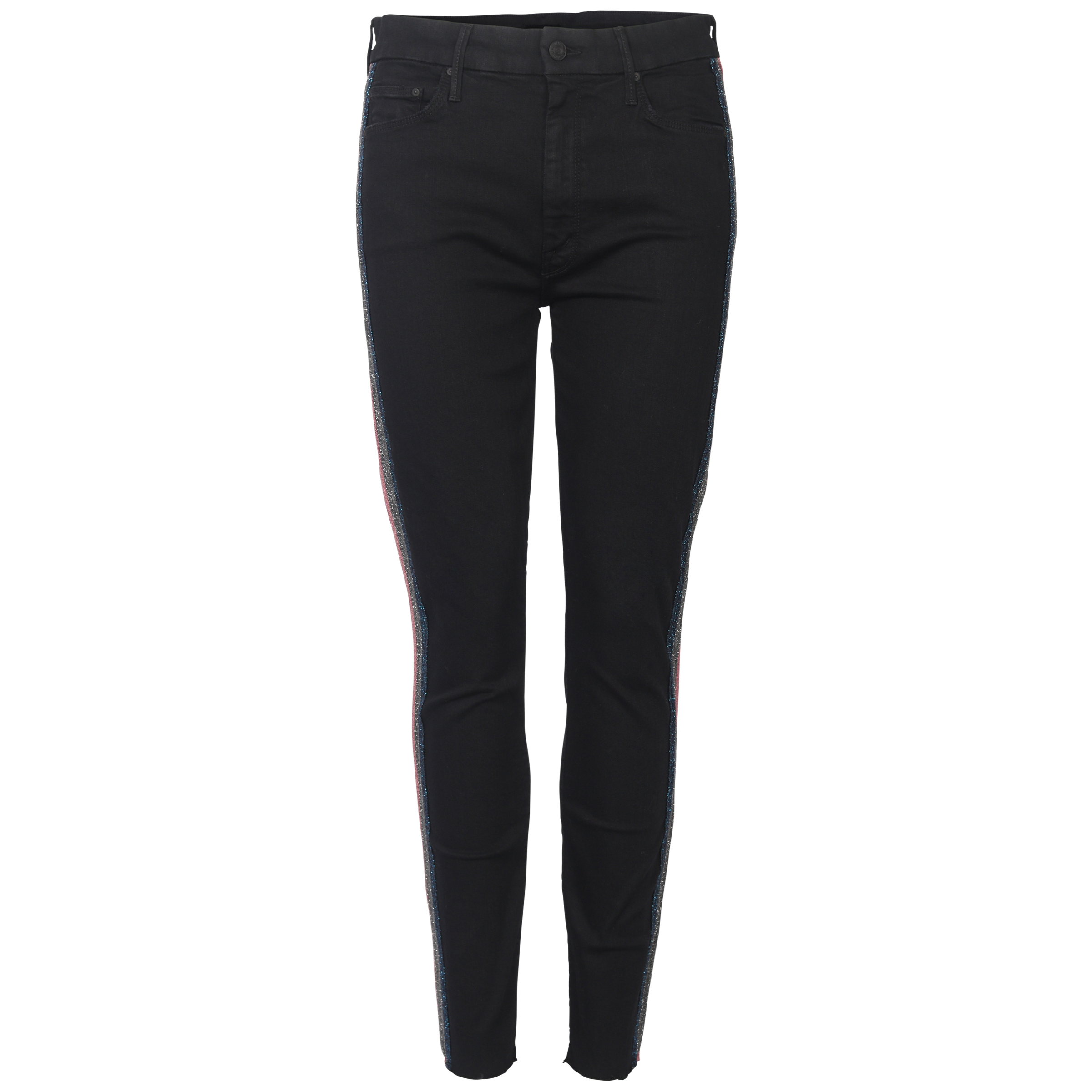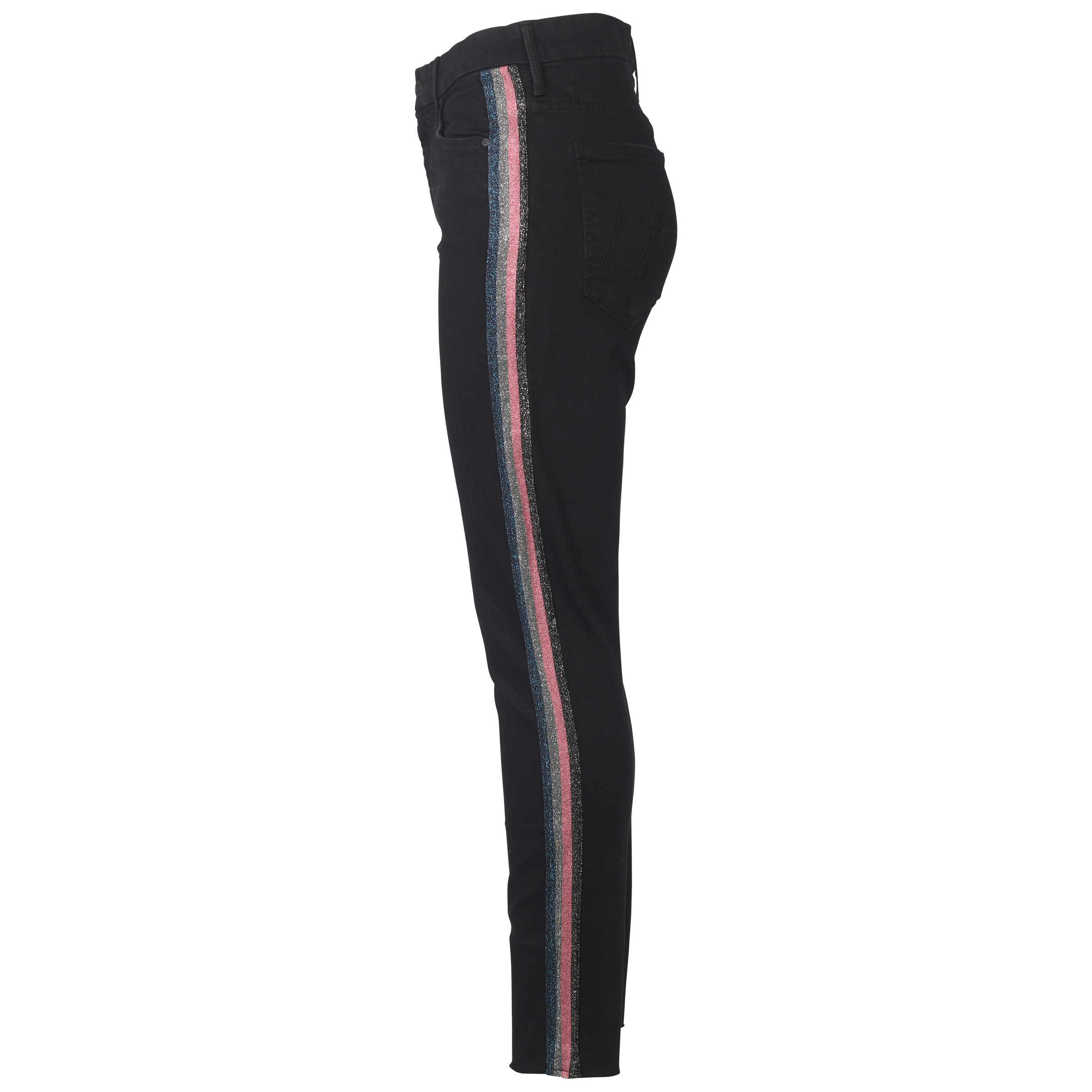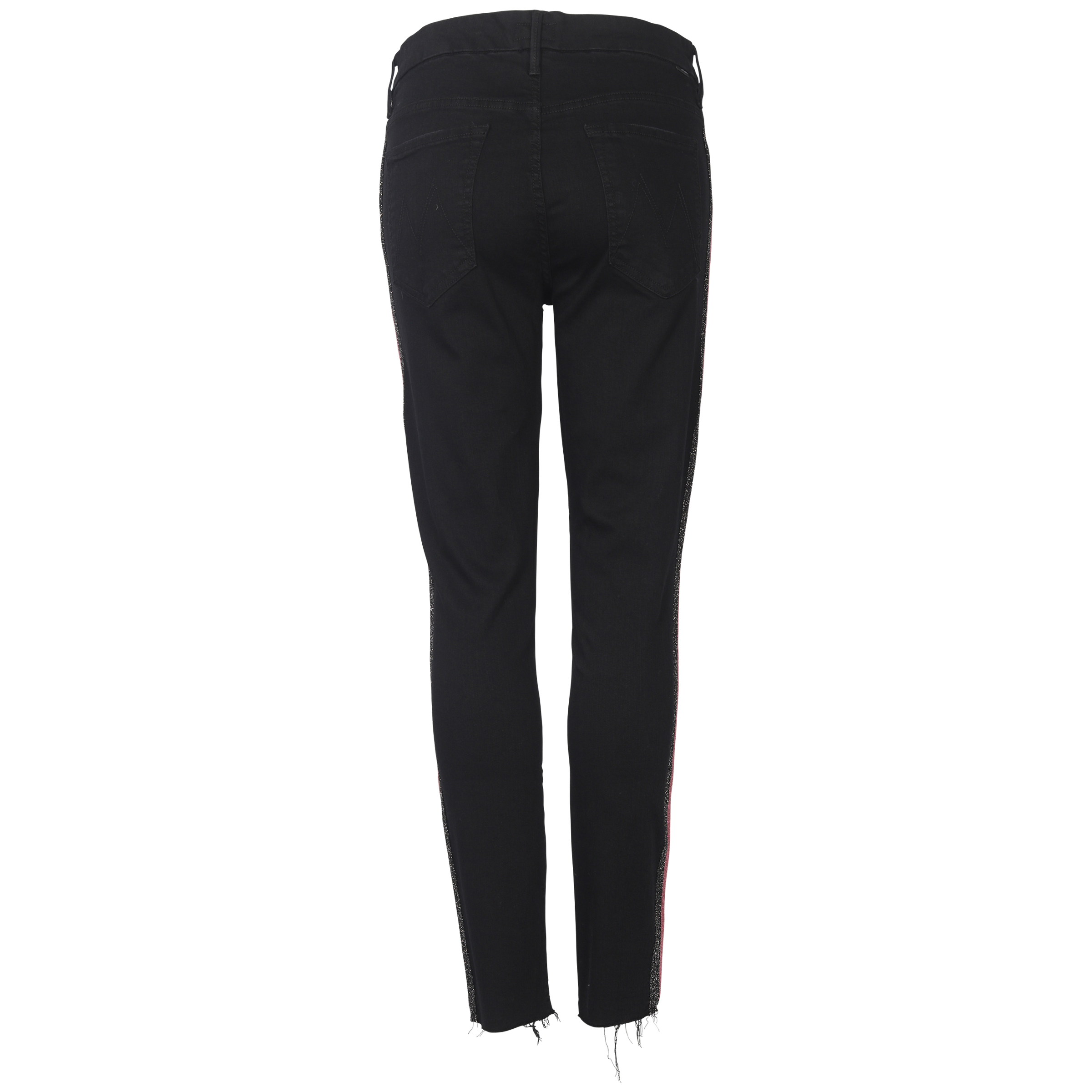 Women's Mother Jeans in schwarzer Waschung und schmaler Passform mit seitlichem Glitzer Streifen.