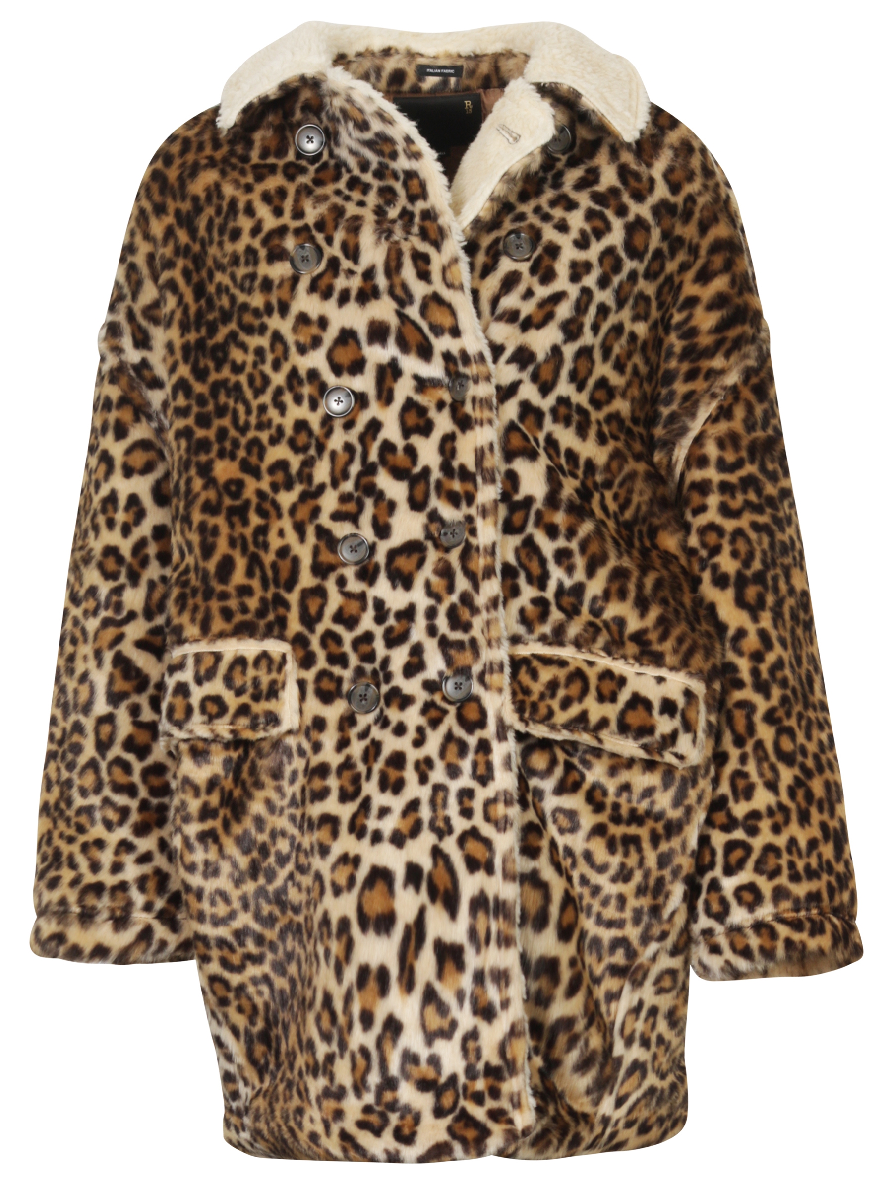 R13, Modell: R13W711279, Großzügig geschnittener Eggshape-Mantel mit doppelreihiger Knopfleiste und on trend Leomusterung. Grungiges, durchdesigntes Fashionpiece auf höchstem Niveau! 100% Faux Fur, Made in Italy
