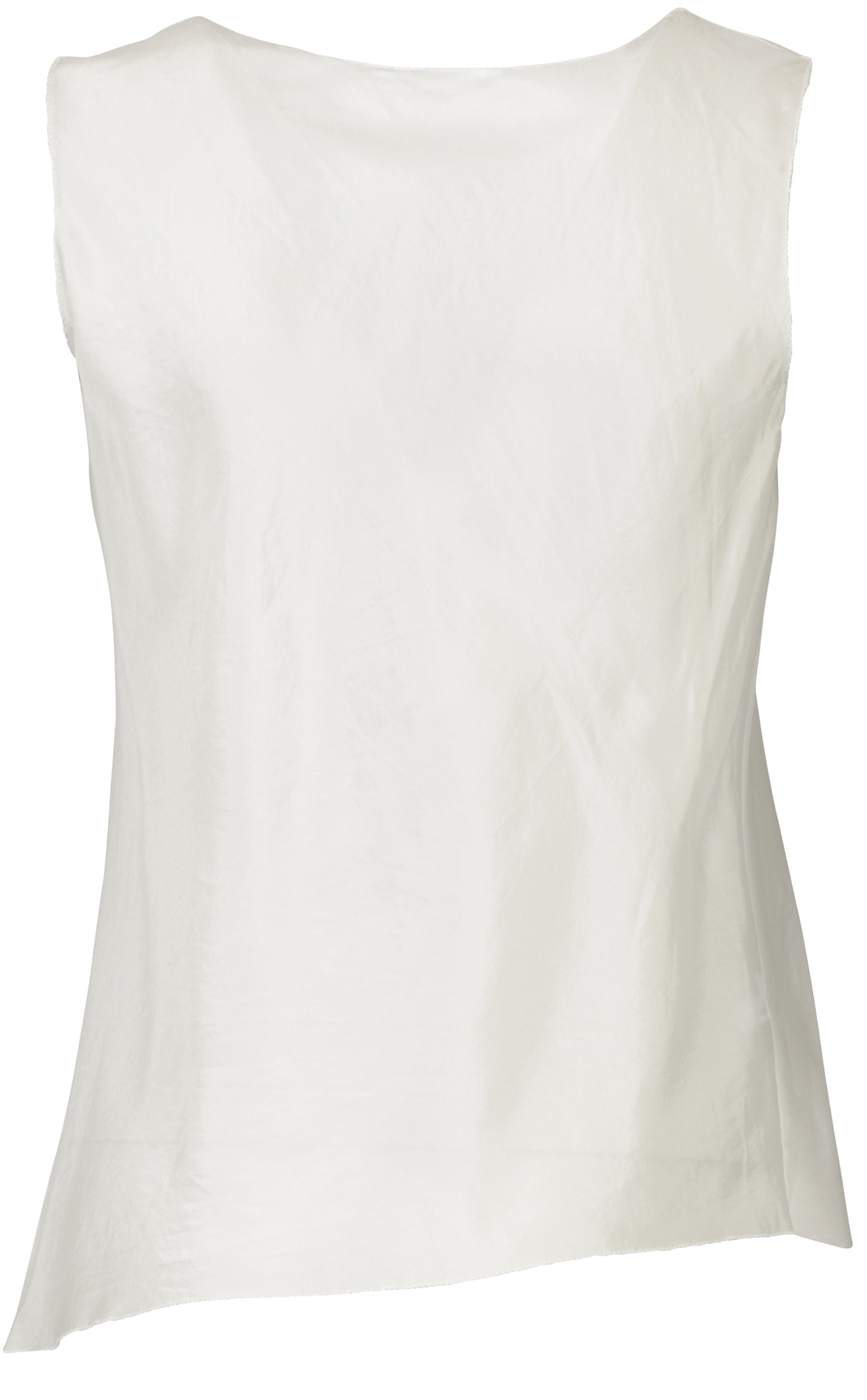 Subtil asymmetrisches Tanktop aus herrlicher Seide in frischem "Clear White", welches als sanft fallende A-Linie konzipiert ist.