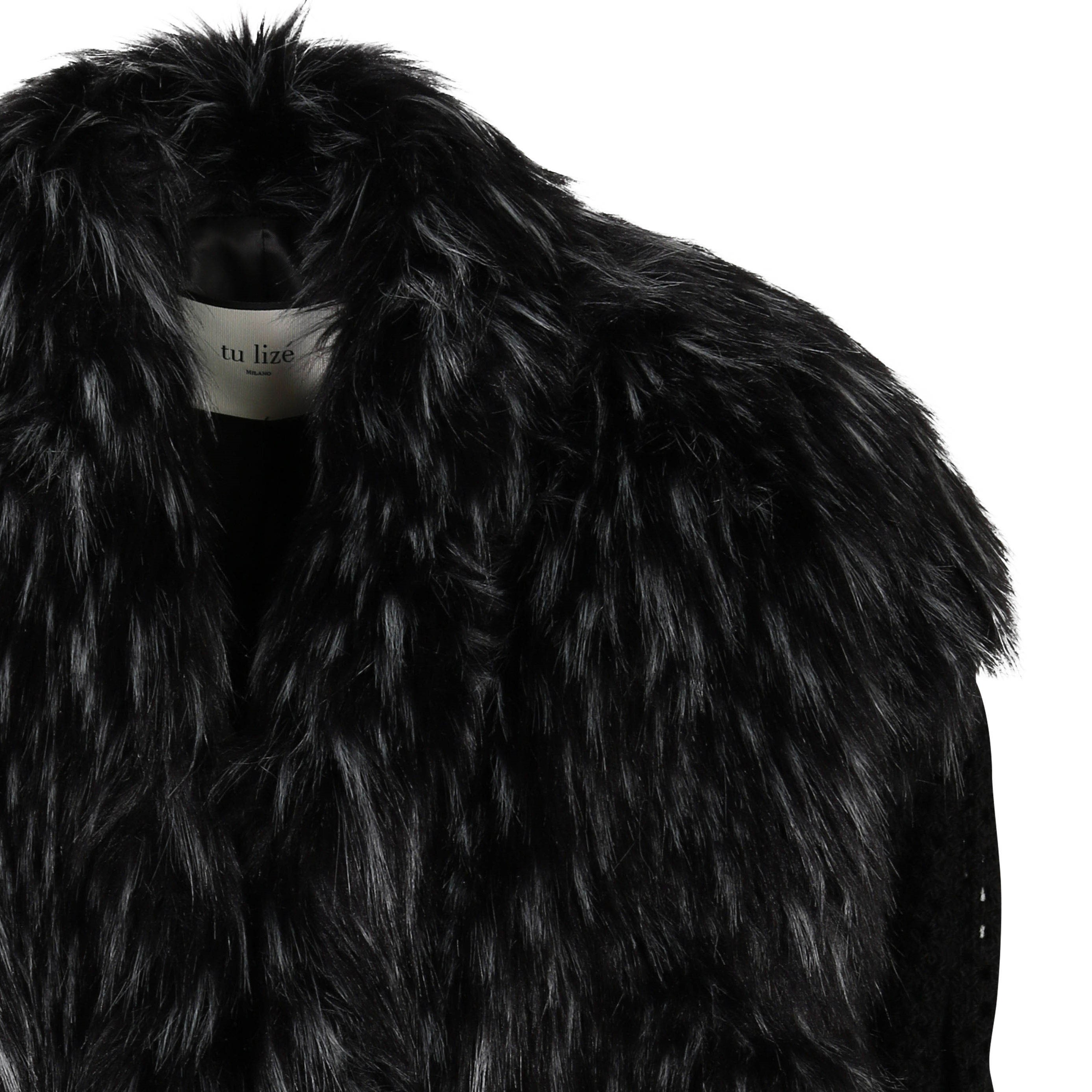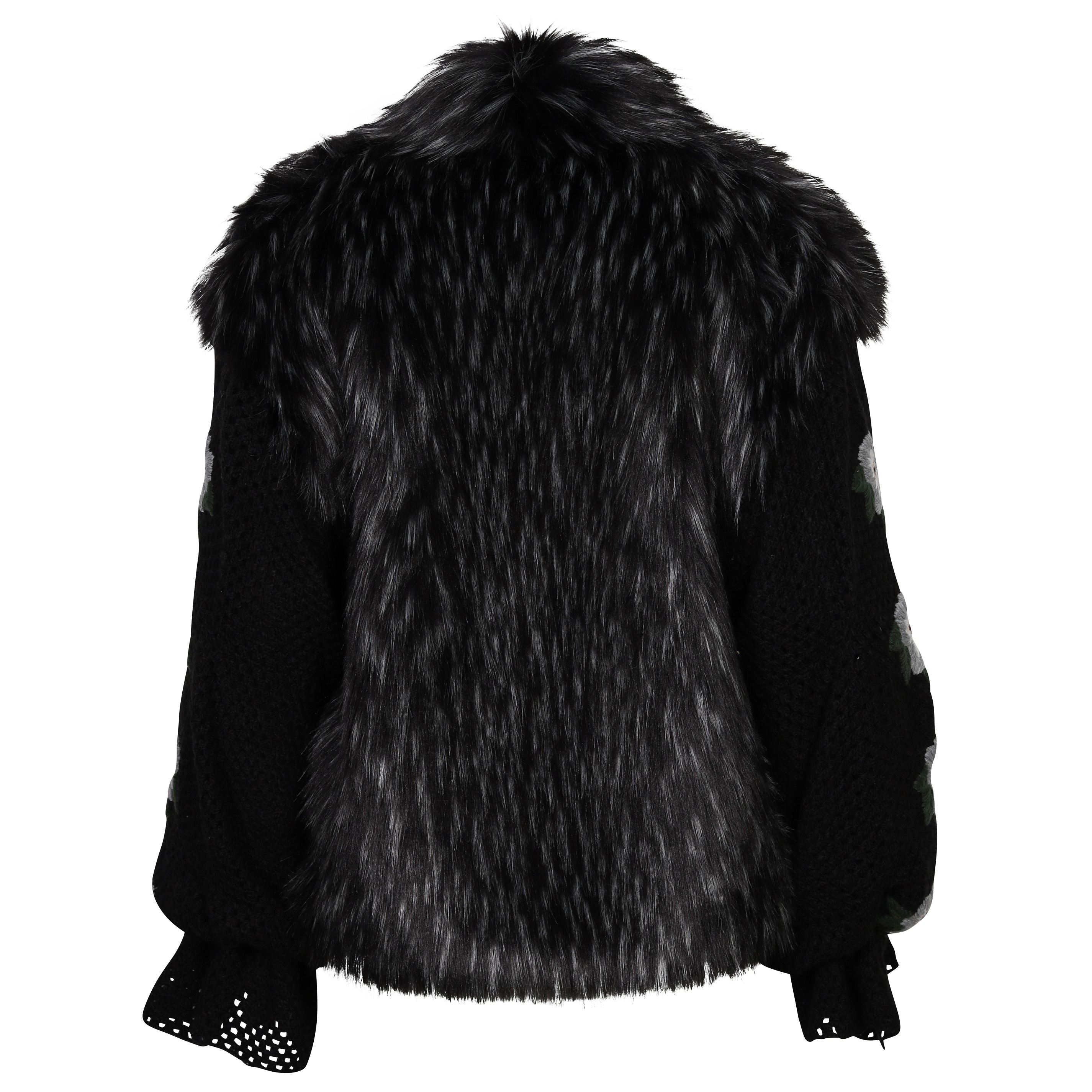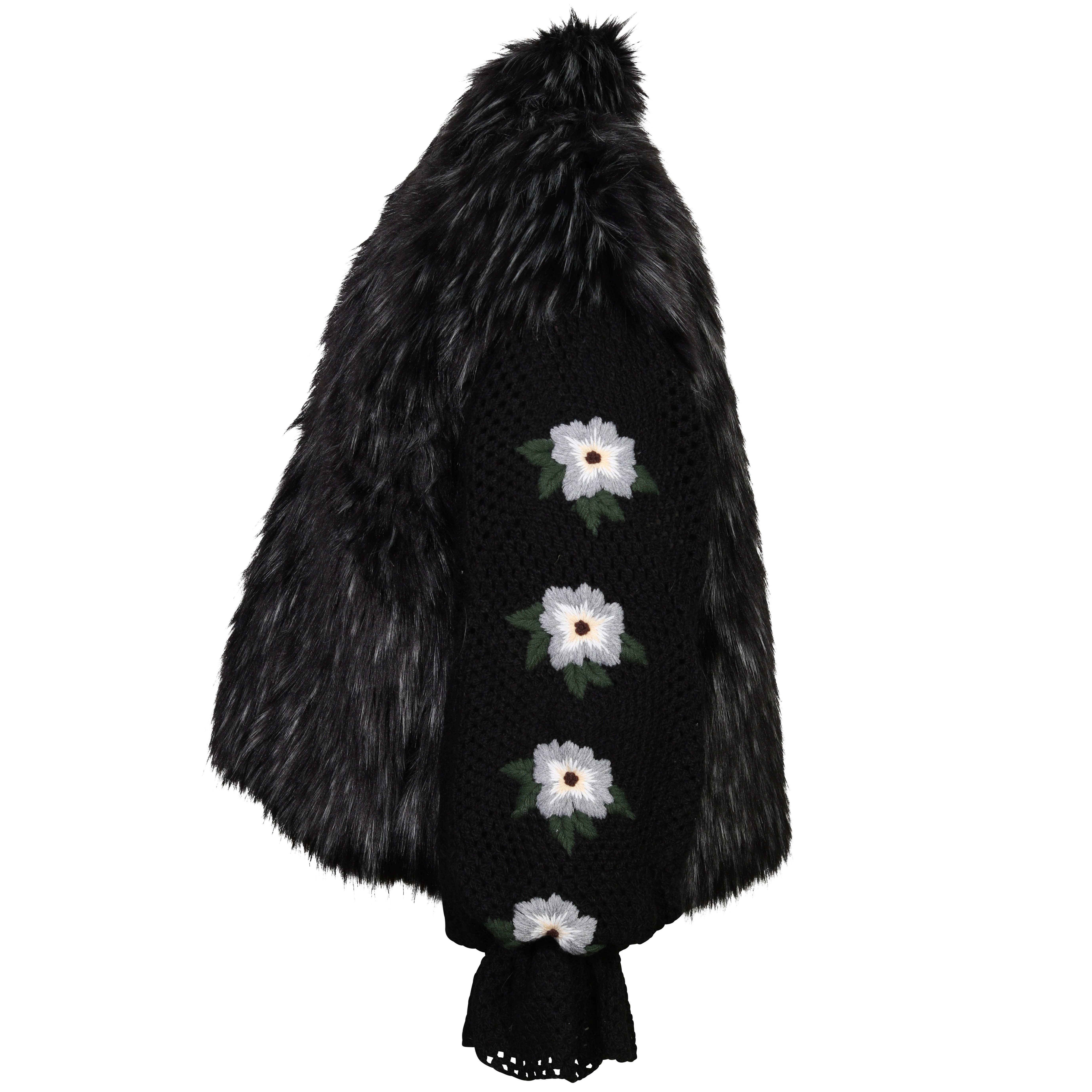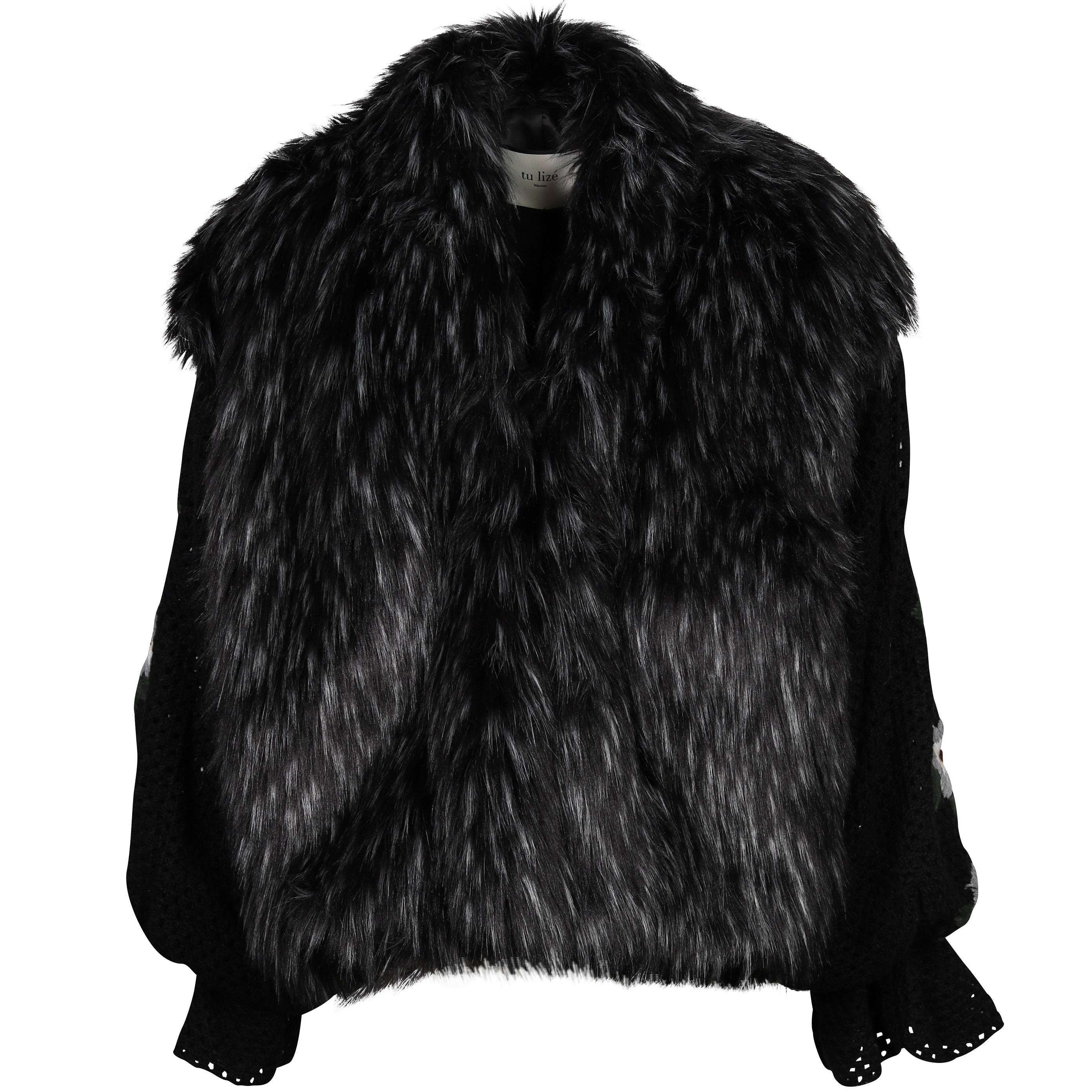 Tu Lizé Black and Silver Eco Fox Fur with Crochet Sleeves XS / S